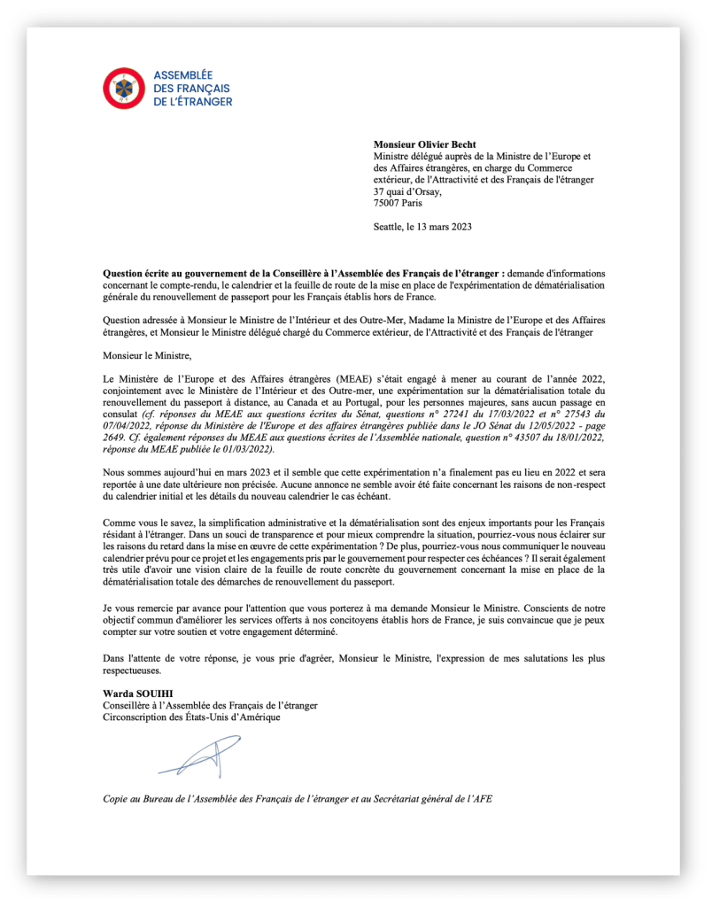 [Question écrite au Gouvernement] Retard de l’expérimentation de la dématérialisation des demandes de renouvellement de passeport