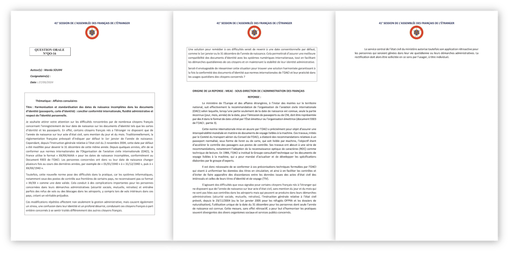 [Egalité d’accès au Service Public][Réponse de l’administration à ma question] Harmonisation et standardisation des dates de naissance incomplètes dans les documents d’identité (passeports, carte d’identité) : concilier conformité internationale, fluidité administrative et respect de l’identité personnelle.