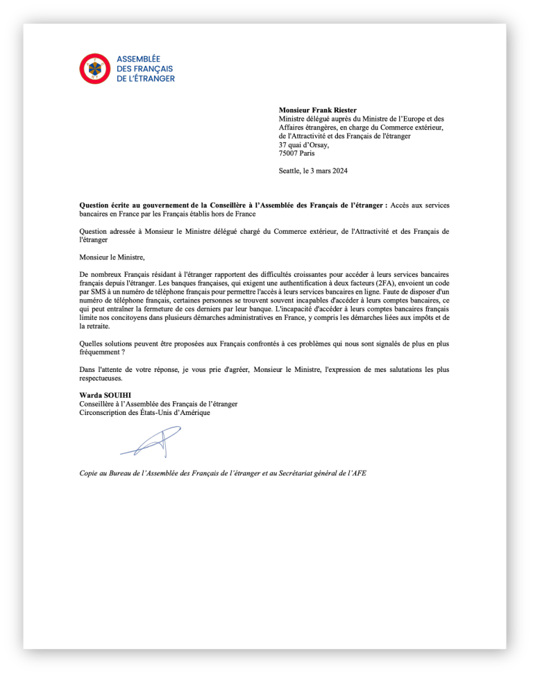 Lire la suite[Question écrite au Gouvernement] Accès aux services bancaires en France par les Français établis hors de France