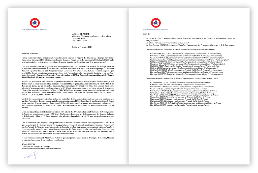 Courrier_CFDE_WardaSouihi_PLFSS2022Télécharger le PDF Partager Article précédent 16 octobre 2021 : Visite de l'école Éducation Française Greater Seattle et échanges avec la Directrice Executive Aurélie Vancauwenberghe, l'équipe pédagogique, le conseil d'administration (Président : Alain Durand) suivis d'une rencontre avec les parents d'élèves. Bravo pour votre engagement ! Article suivant 25 octobre 2021 : 2nd conseil consulaire des bourses scolaires (CCB2). Plus de 150 élèves français et 11 établissements de la circonscription vont bénéficier de ce dispositif avec 2 millions d'euros d'aides allouées